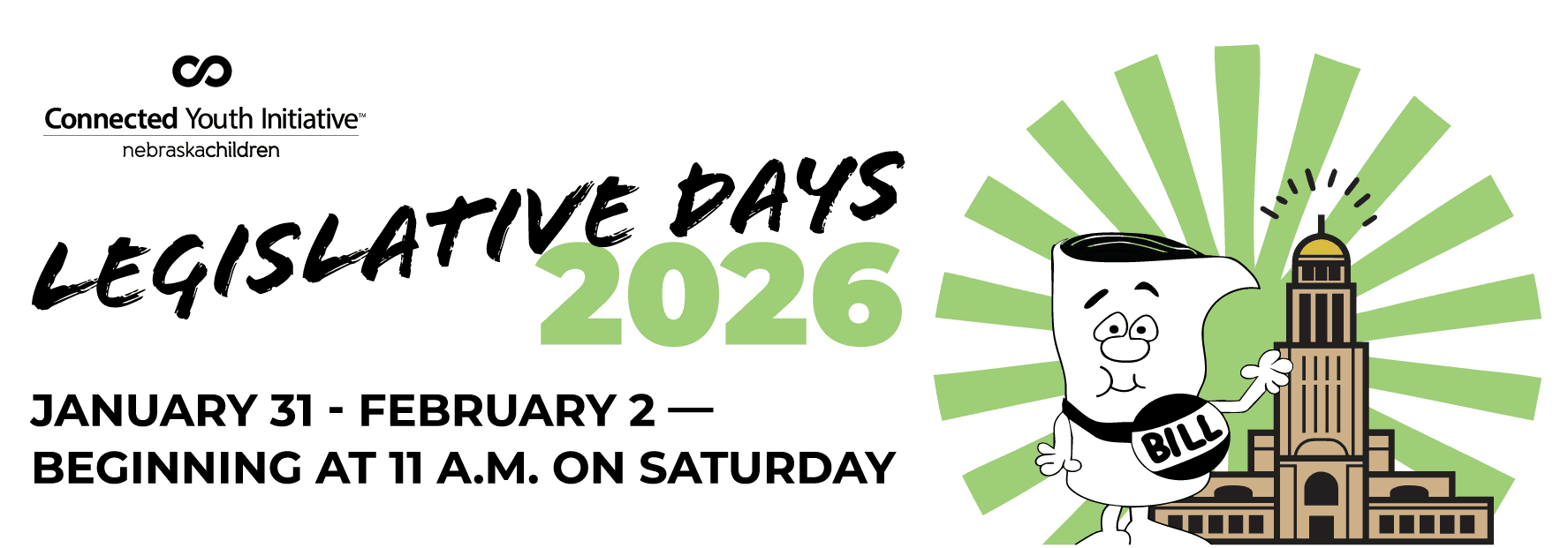Young adults, please join us for a weekend where you'll learn about the legislative process and gain skills to change laws and policies based on your lived experience. You'll have the opportunity to give your opinion on current Nebraska legislation, tour the Nebraska Capitol, and speak with Nebraska State Senators and potentially the Governor. It's also a great chance to build friendships with other members who share your interests.